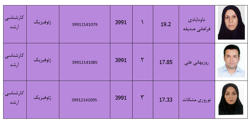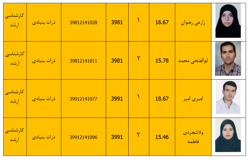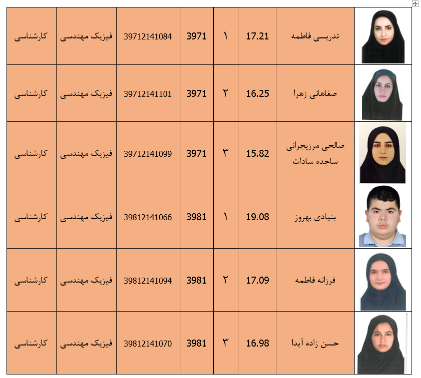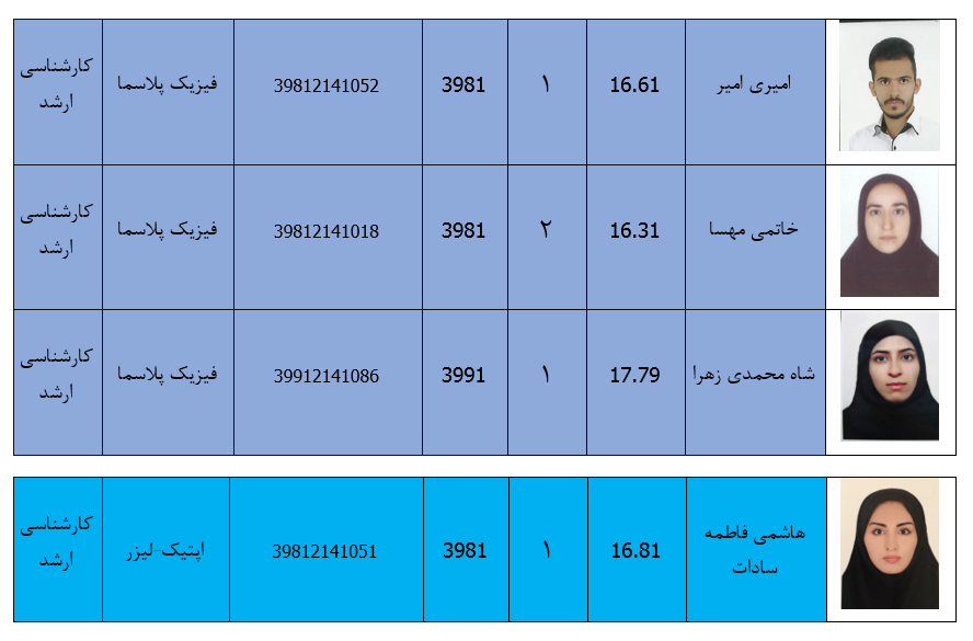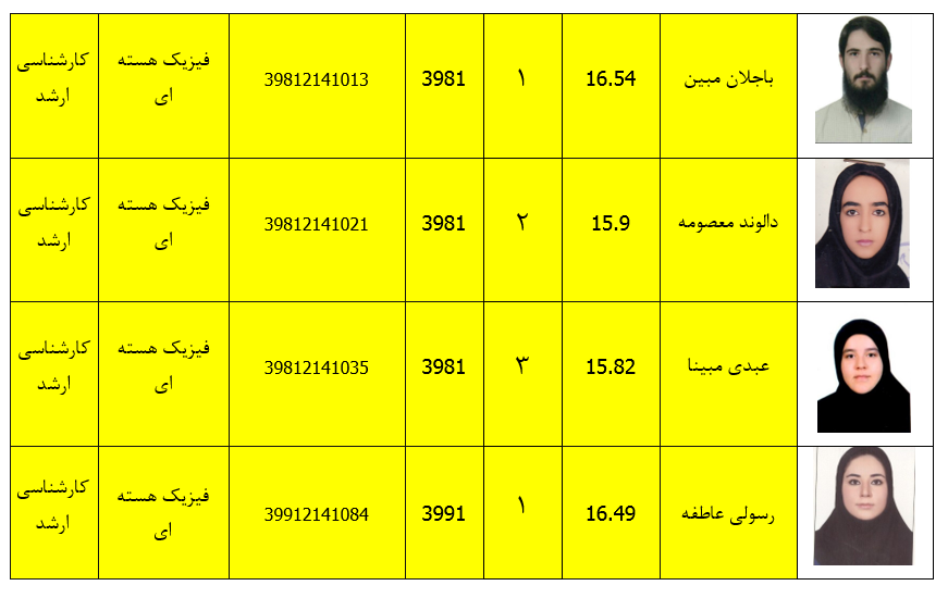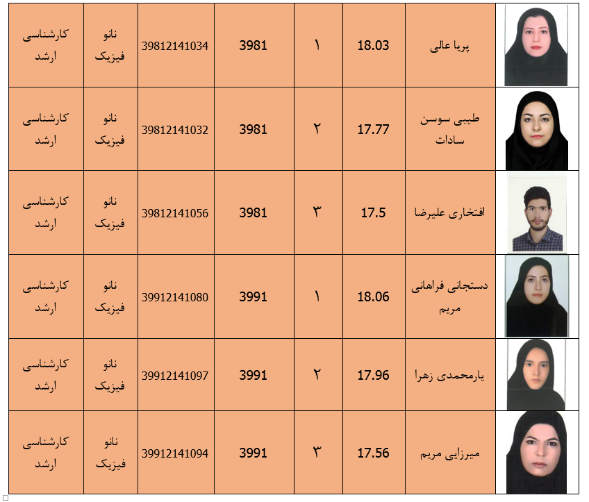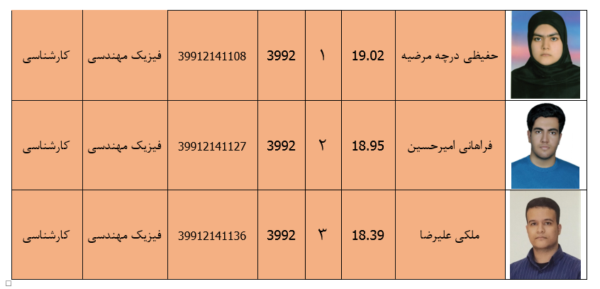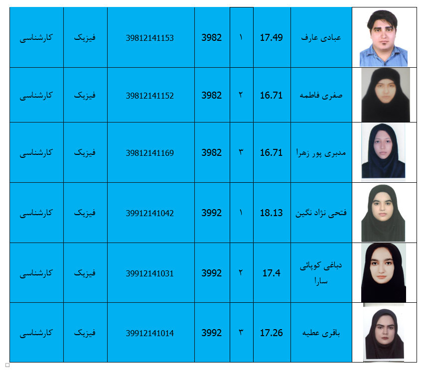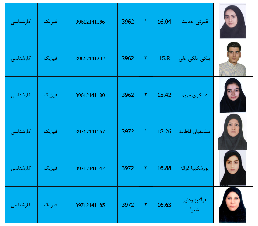 دانشجویان ممتاز گروه فیزیک در مقاطع کارشناسی وکارشناسی ارشد