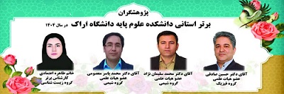 در گروه علوم پایه در بخش دانشمندان یک درصد پر استناد جهان از دکتر یاسر معصومی تقدیر شد. همچنین در گروه علوم پایه از دکتر محمد سلیمان نژاد و دکتر حسین صادقی به عنوان پژوهشگر برتر استان مرکزی تقدیر شد.