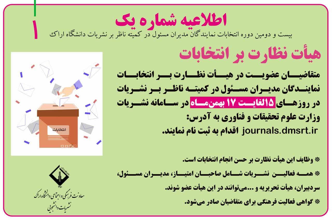 اطلاعیه شماره ۱ انتخابات مدیران مسئول در کمیته ناظر بر نشریات دانشگاه اراک