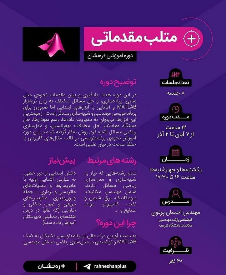 دوره آموزشی متلب مقدماتی - مهندسی صنایع