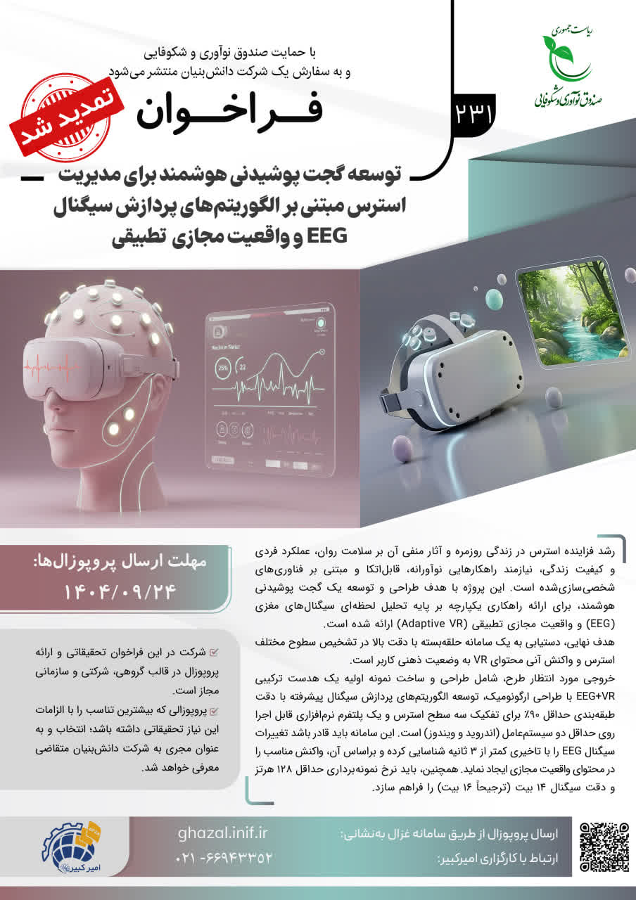 فراخوان توسعه گجت پوشیدنی هوشمند برای مدیریت استرس مبتنی بر الگوریتمهای پردازش سیگنال EEG و واقعیت مجازی تطبیقی