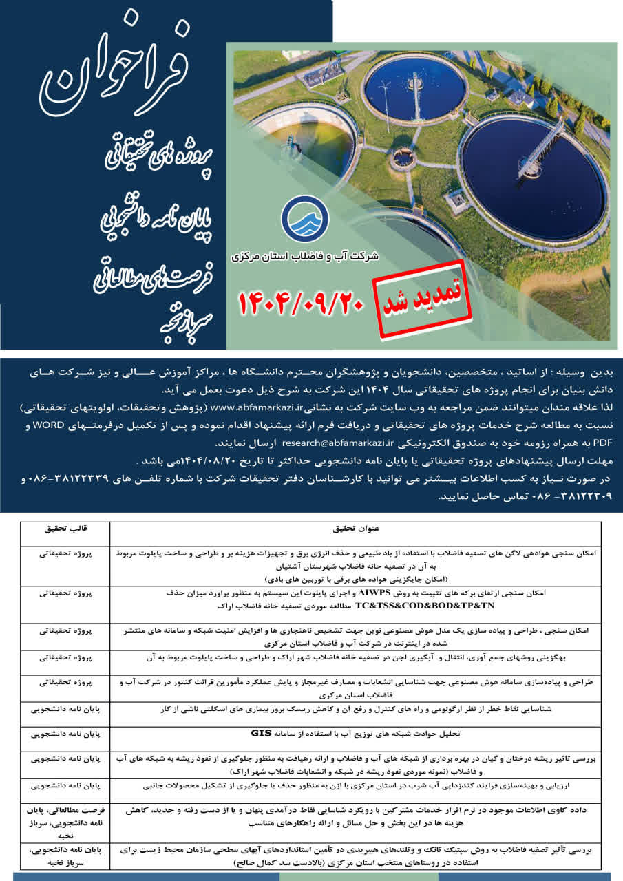 فراخوان پروژههای تحقیقاتی، پایان نامه دانشجویی، فرصتهای مطالعاتی و سرباز نخبه
