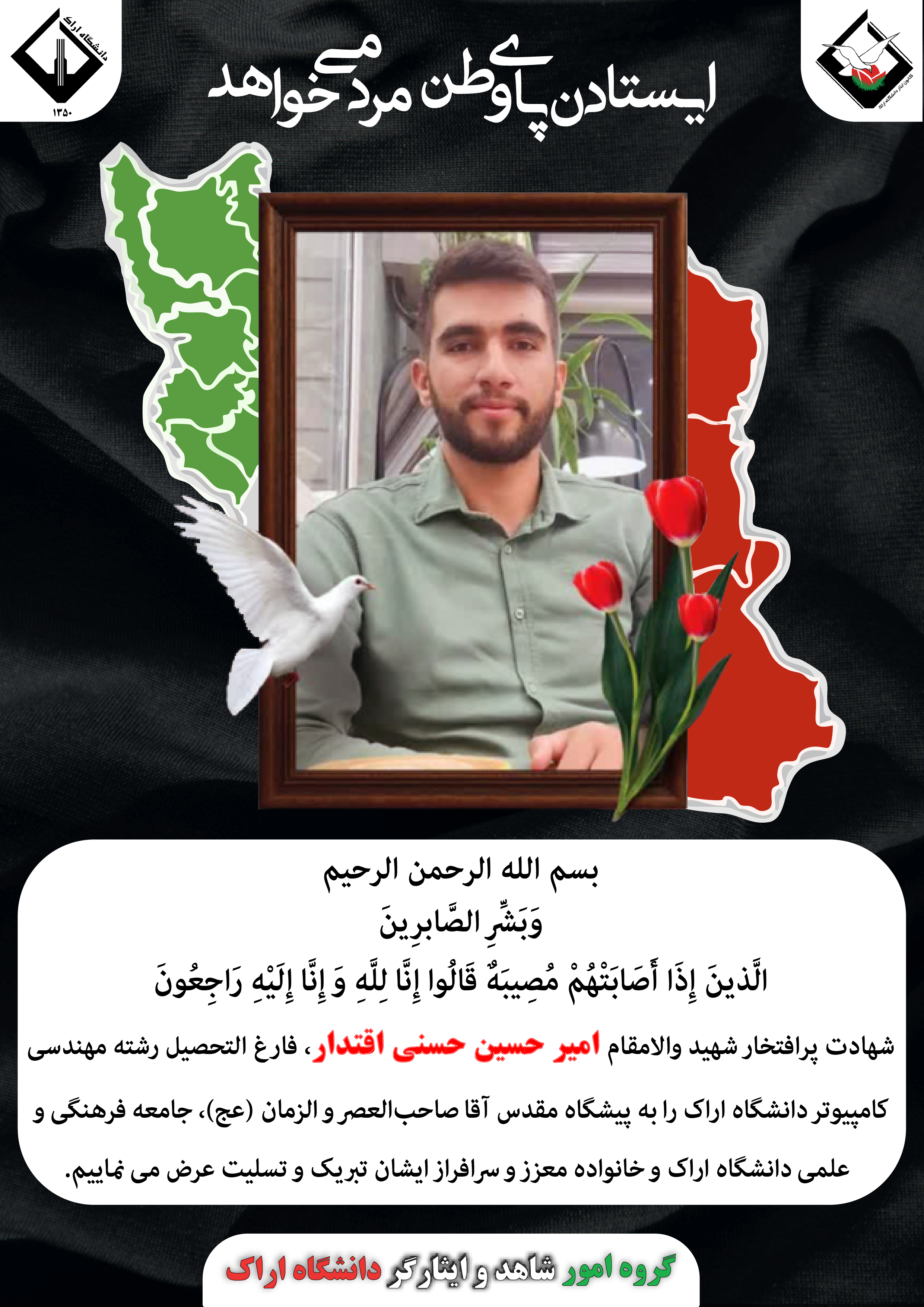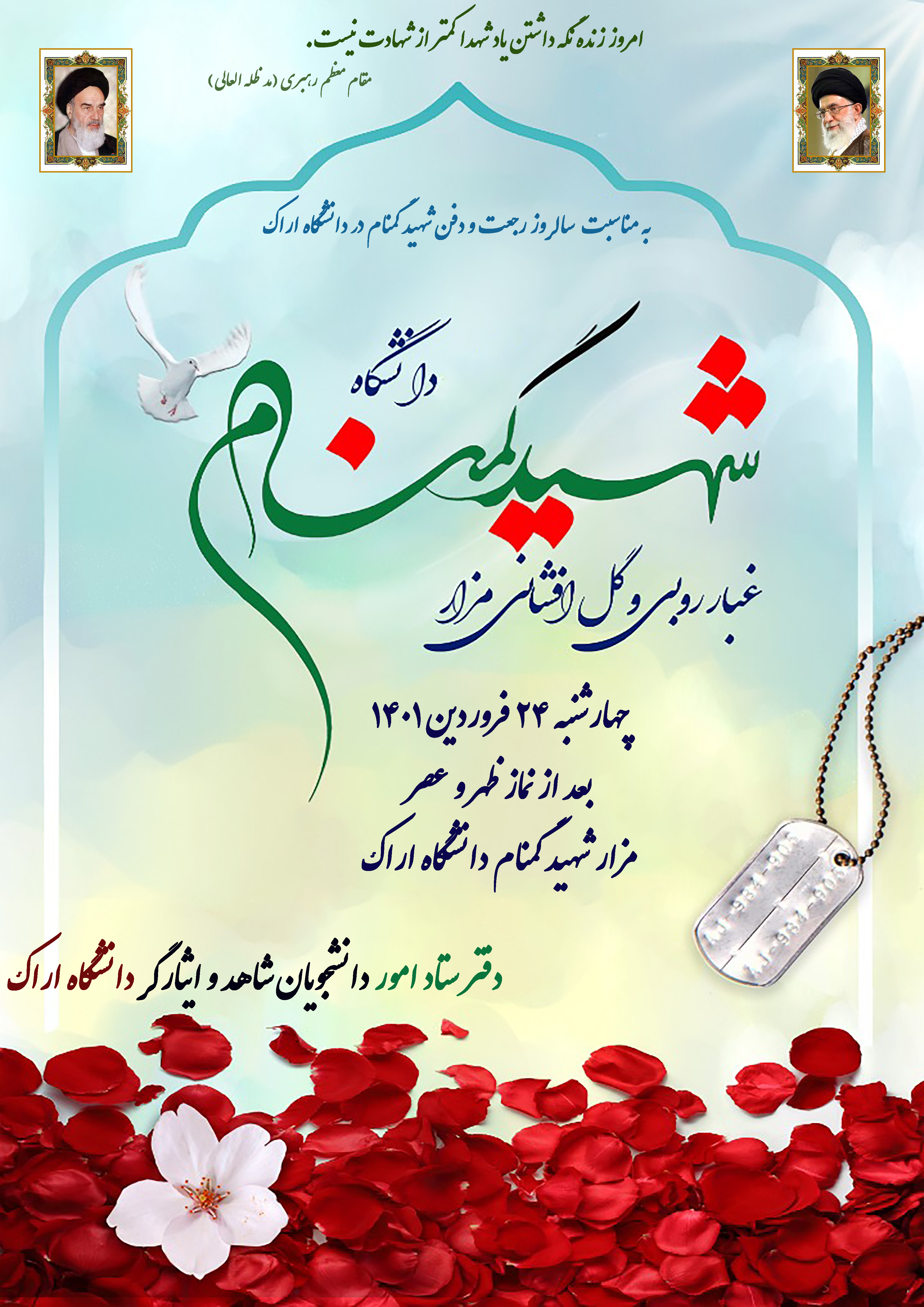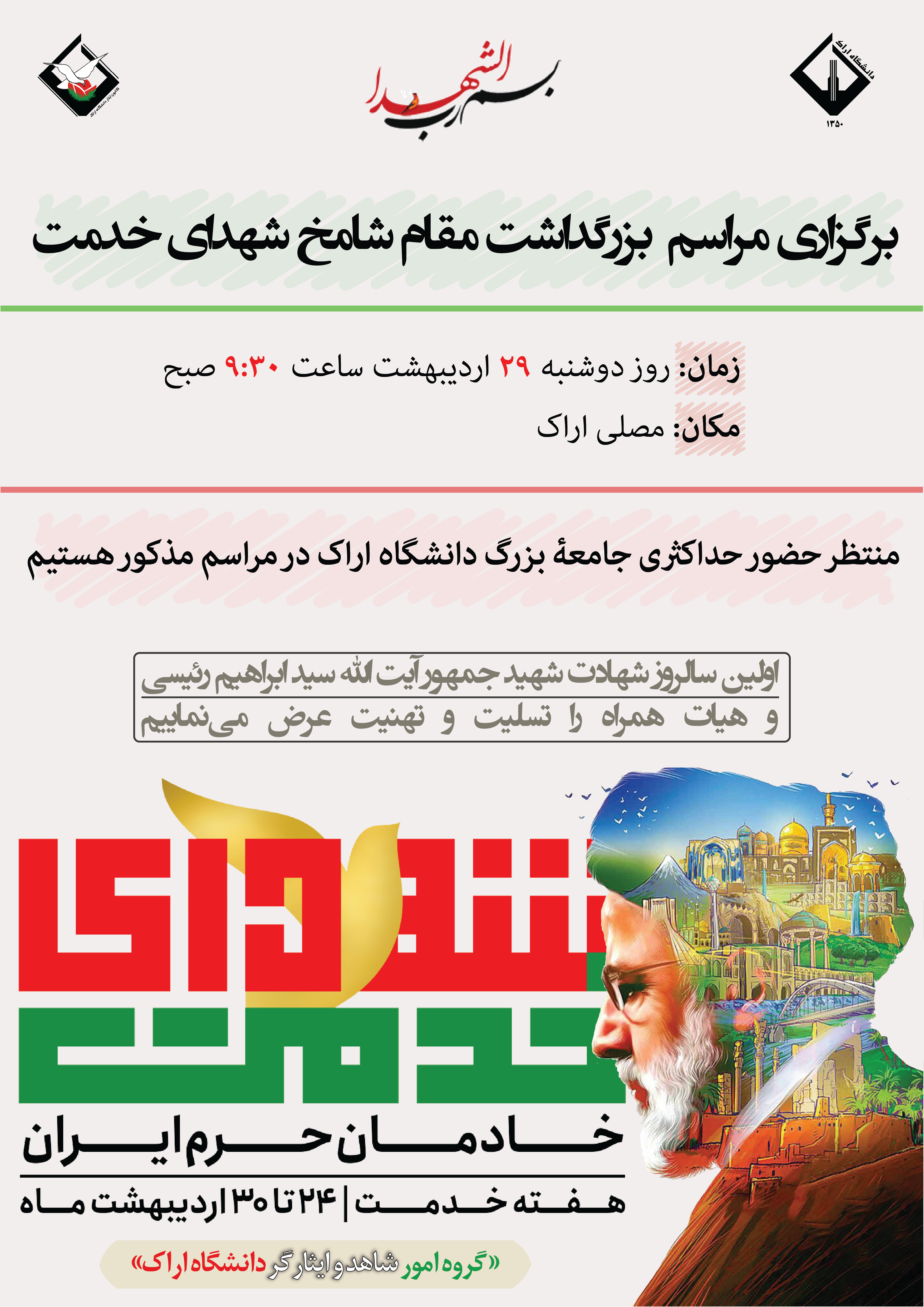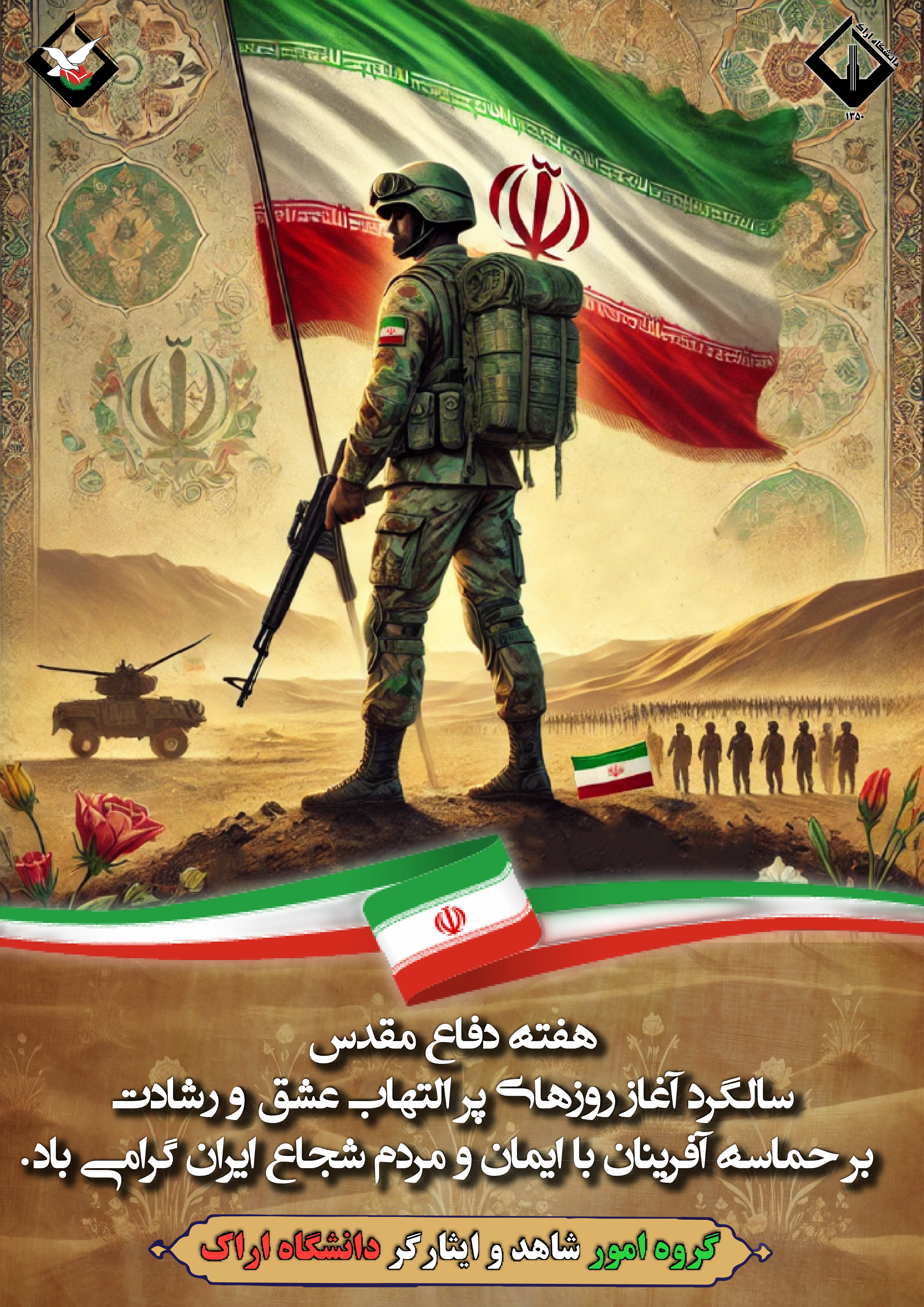 "پوستر های عرض تبریک و تسلیت مناسبت های مذهبی ، ملی و دفاع مقدس گروه امور شاهد و ایثارگر دانشگاه اراک "