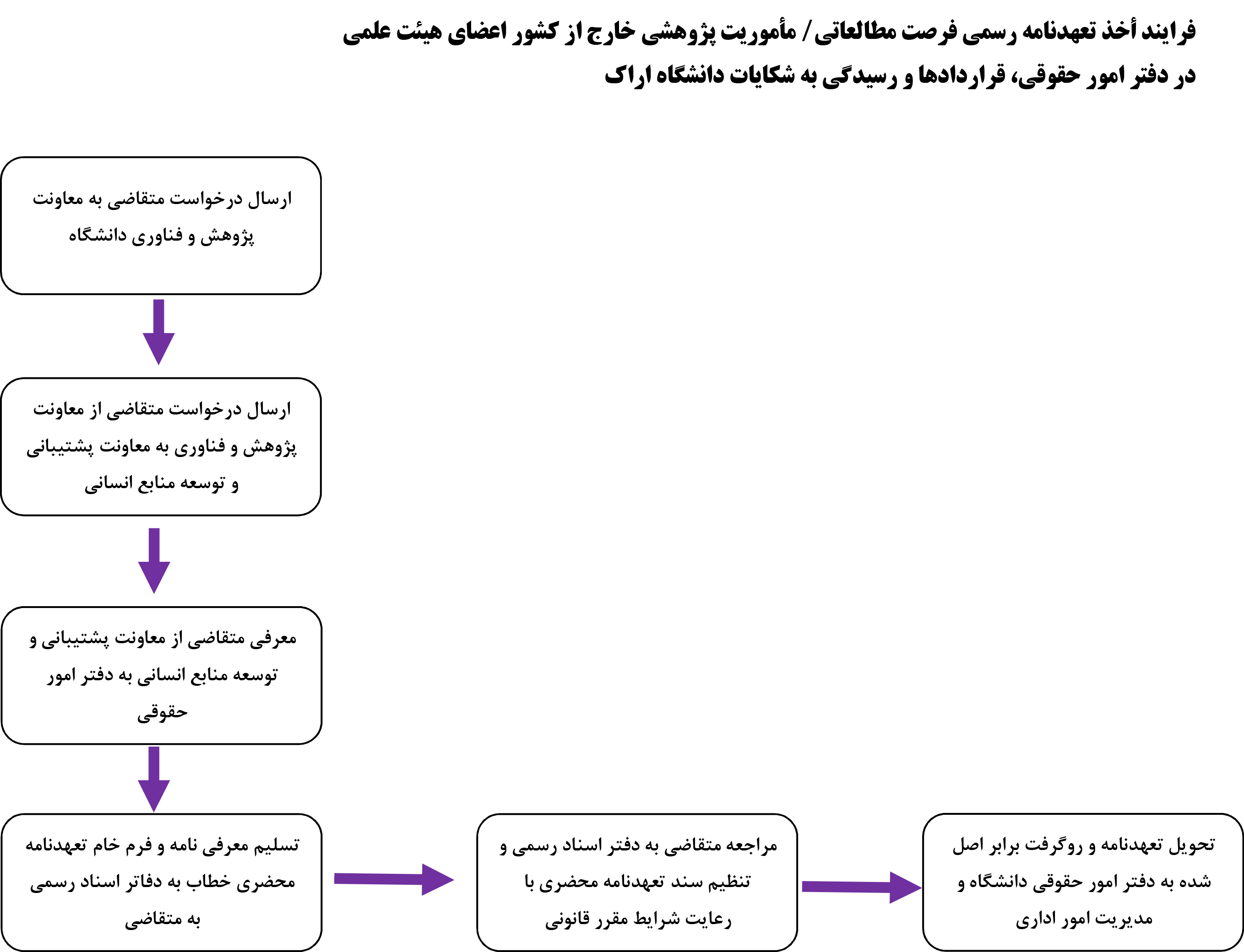 فرایند أخذ تعهدنامه رسمی وثیقه ملکی فرصت مطالعاتی/ مأموریت پژوهشی خارج از کشور اعضای هیئت علمی در دفتر امور حقوقی، قراردادها و رسیدگی به شکایات دانشگاه اراک (دانلود)