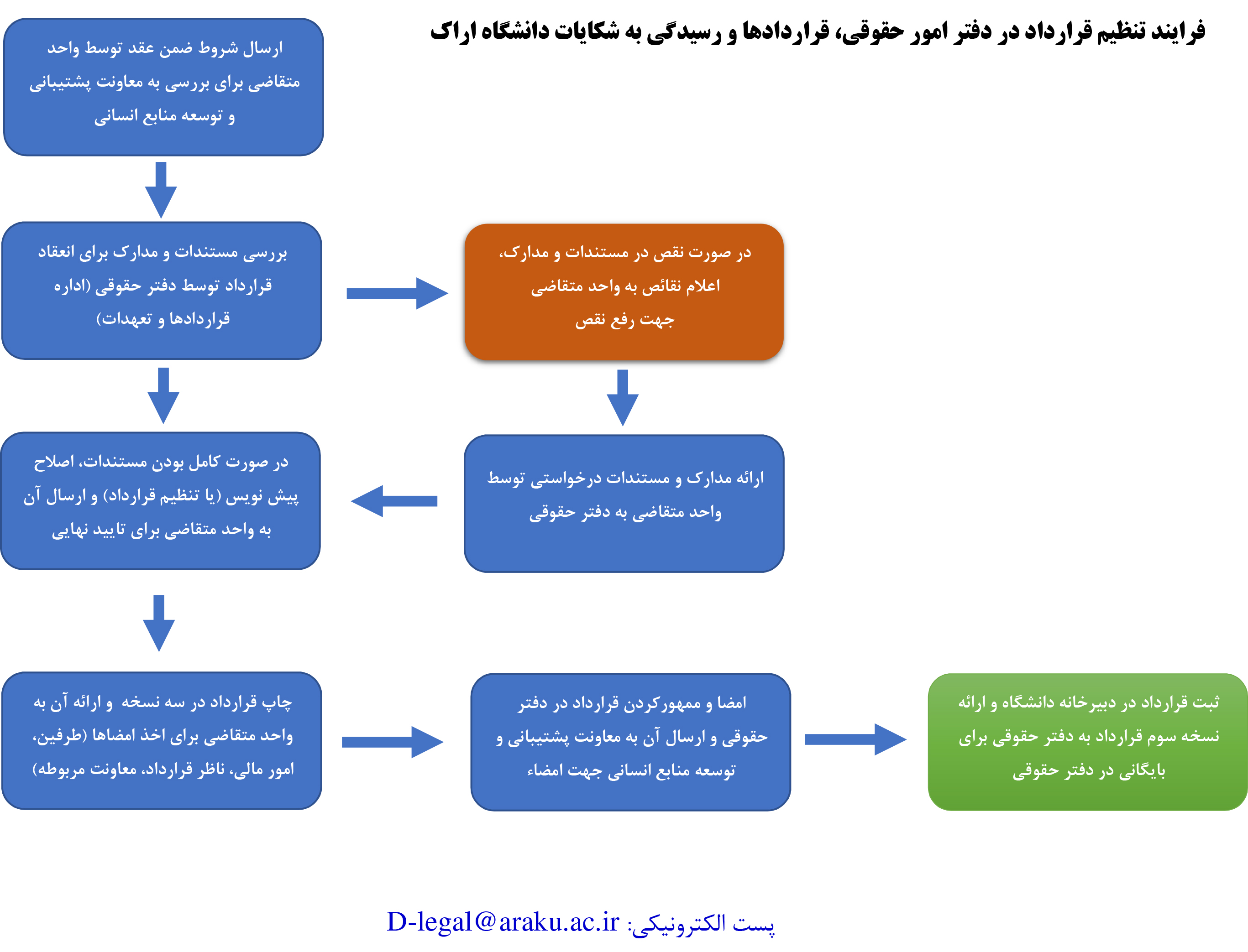 فرایند تنظیم قرارداد در دفتر امور حقوقی، قراردادها و رسیدگی به شکایات دانشگاه اراک (دانلود)
