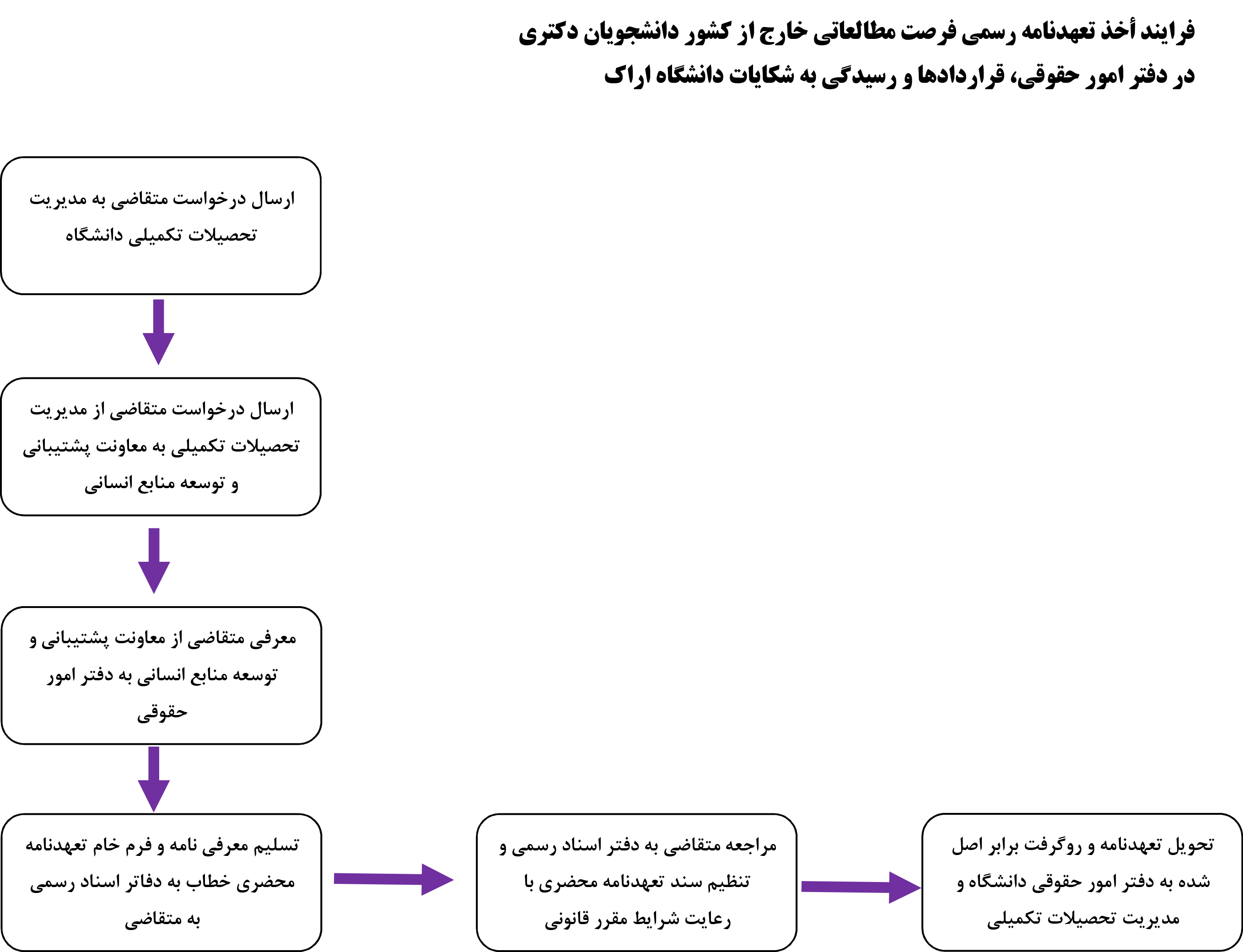 فرایند أخذ تعهدنامه رسمی وثیقه ملکی فرصت مطالعاتی خارج از کشور دانشجویان دکتری در دفتر امور حقوقی، قراردادها و رسیدگی به شکایات دانشگاه اراک (دانلود)